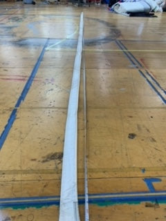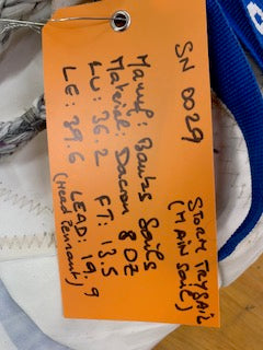 Quadruple stitching at the seams, Luff rope 5/16, no slides (yet). Head pennant = 19.9.