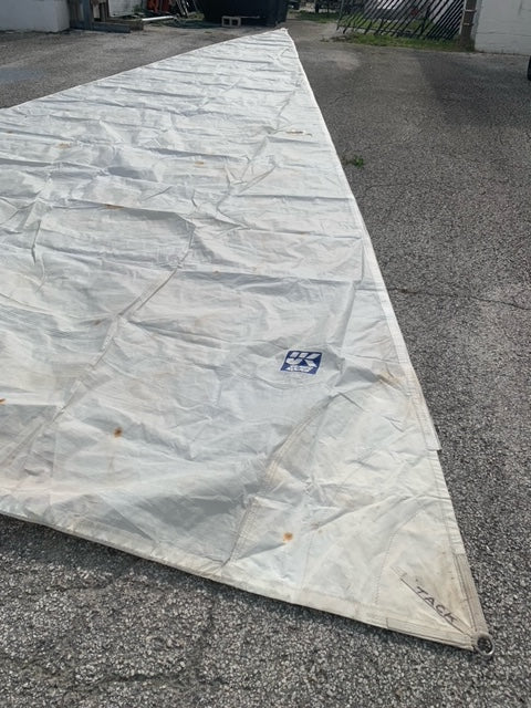 Blade Jib, 4 battens, luff tape #6, 2 telltale windows, some rust stains, could enjoy a wash
