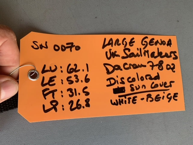 Genoa - UK Sailmakers - $100.00 - (Sku=0070, LU=62.1', LE=53.6', FT=31.5', LP=26.8')